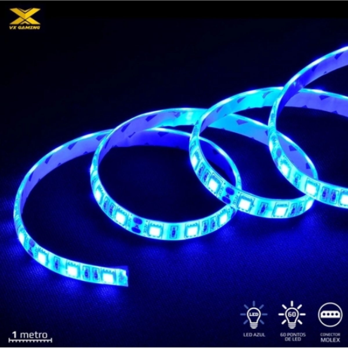 Fita De Led Vx Gaming Azul Com Conexão Molex 60 Pontos De Led 1 Metro - Lam1 - Vinik