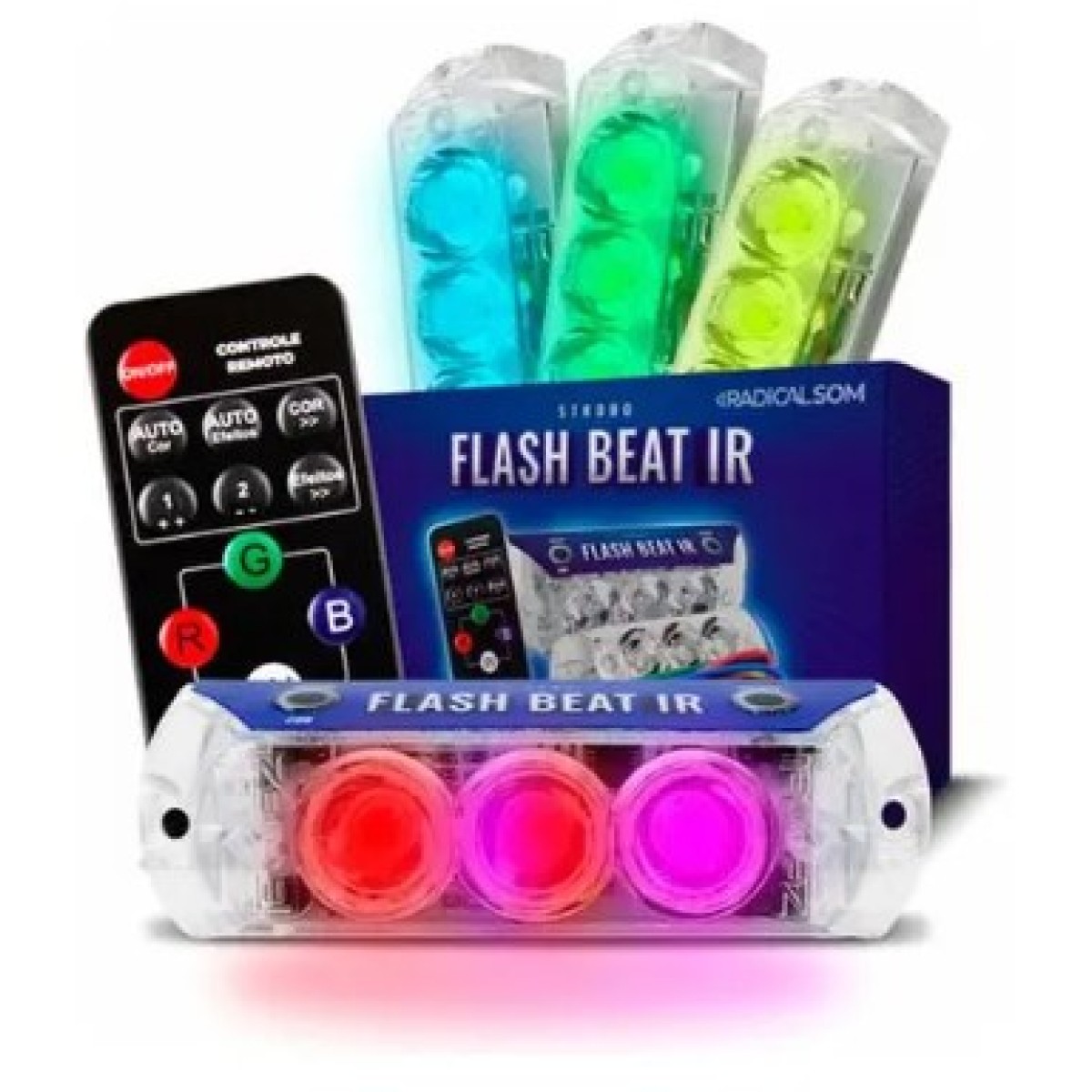 Troca de cores e efeitos através das chaves existentes no farol ativoou pelo controle remoto que acompanha o produto.