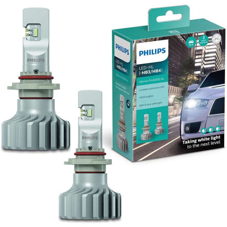Com a tecnologia SafeBeam, as lâmpadas de LED para faróis dianteiros Philips Ultinon Pro5000 aumentam a visibilidade em até 160%. O padrão do feixe de luz é tão importante quanto o brilho que ela emite: um padrão de feixe uniforme e preciso permite que você veja e seja visto com muito mais clareza. A tecnologia Philips AirBoost é um sistema de resfriamento inteligente que desvia o calor dos componentes críticos da lâmpada.