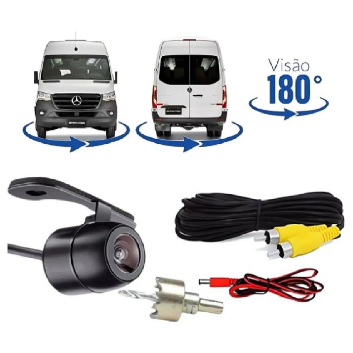 Produto versátil, pode ser instalada como câmera borboleta (externa) ou embutida (furo no para-choque). Ideal para carros, motos, caminhões e utilitários.