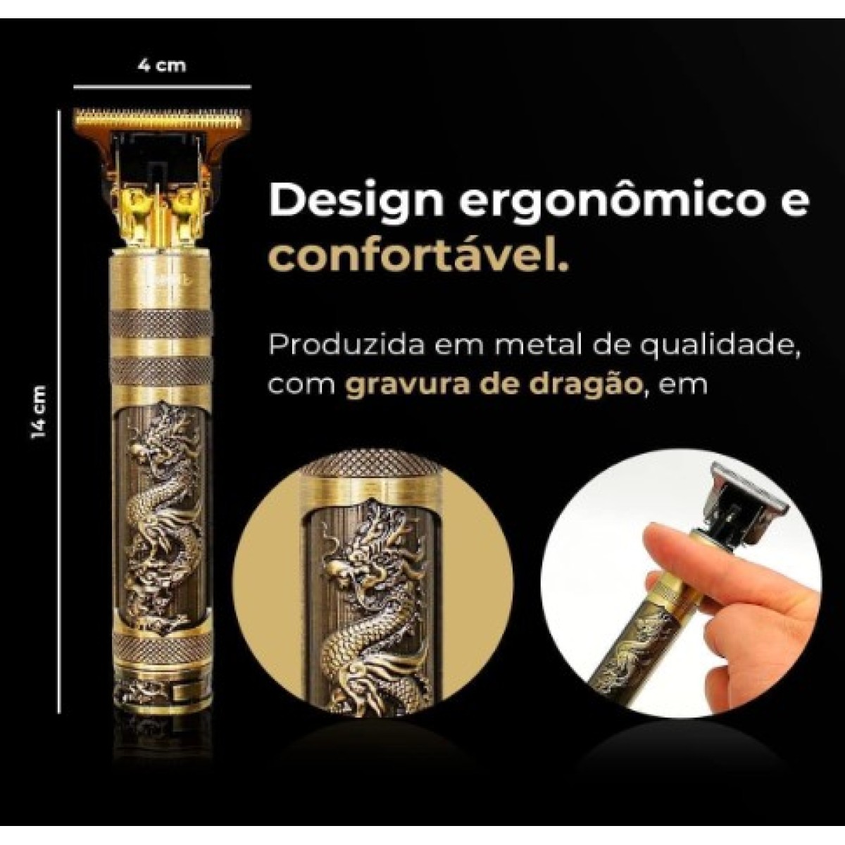• ???????? Design Premium e Ergonômico – Corpo em metal com acabamento vintage em alto relevo (dragão estilizado) e pegada antiderrapante que garante conforto e firmeza.
