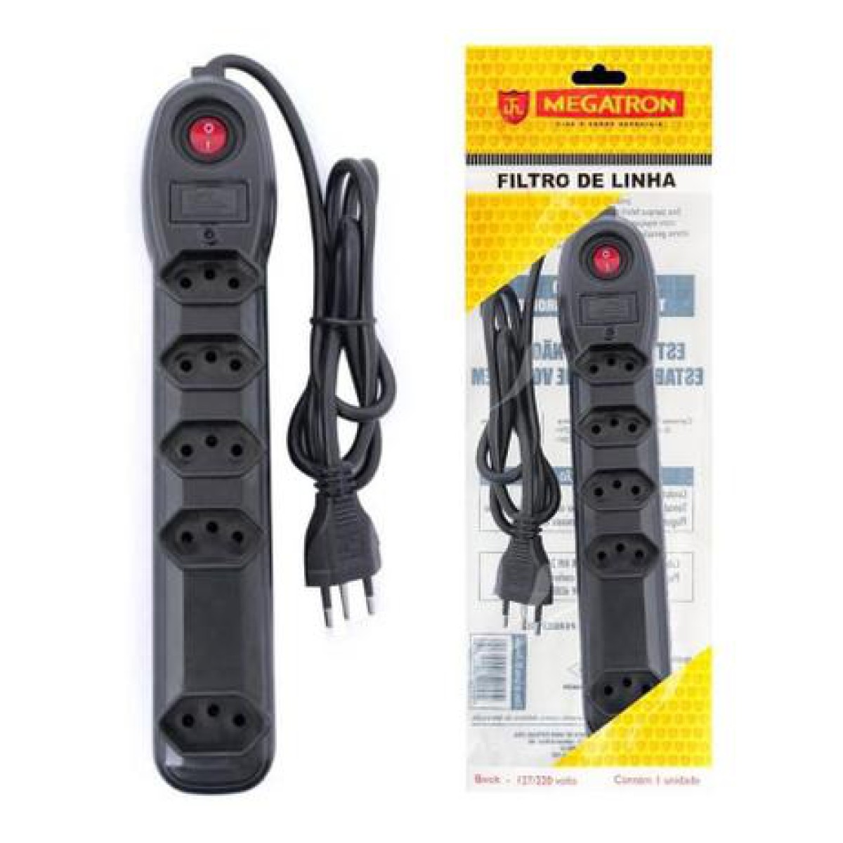 Excelente Filtro de linha Megatron, pode ser utilizado nas redes 127V e 220V (Bivolt) e possuem uma chave disjuntora (liga/desliga) que é acionada automaticamente na ocorrência de sobrecarga ou curto circuito.