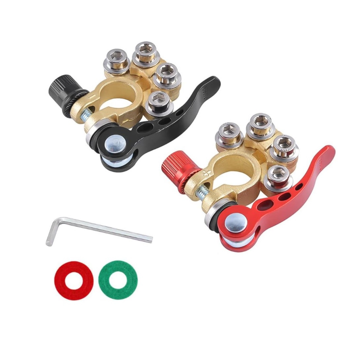 - [Terminal de bateria de 4 vias] Feito de latão de alta qualidade e material de aço que é resistente à corrosão com excelente condutividade elétrica que pode reduzir a distorção de tensão e a perda de transmissão. E tem 4 portas para várias conexões de cabo, a fiação é fácil e conveniente de modificar.