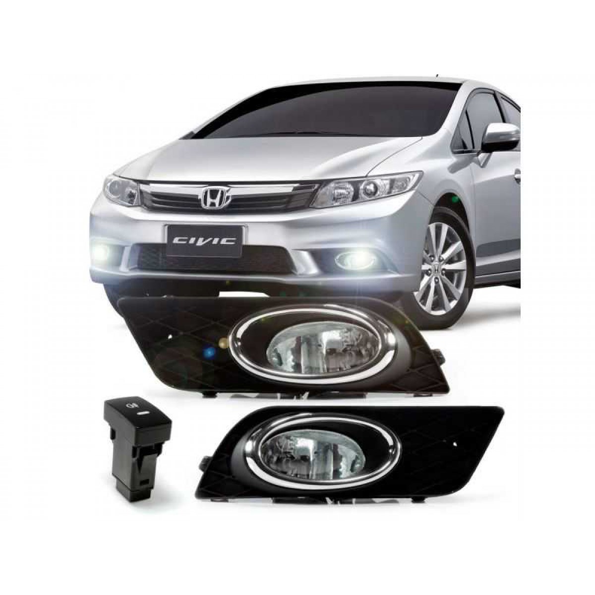 Kit Farol de Milha Civic 2012-2014 Com molduras cromadas e botão modelo original