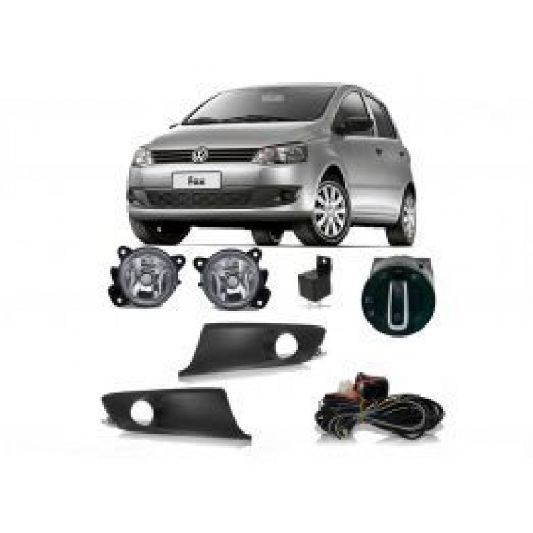 Kit Farol de Milha Fox/ Space Fox 2014 (Com molduras pretas) e botão original redondo (cinza), (não serve na bluemotion)