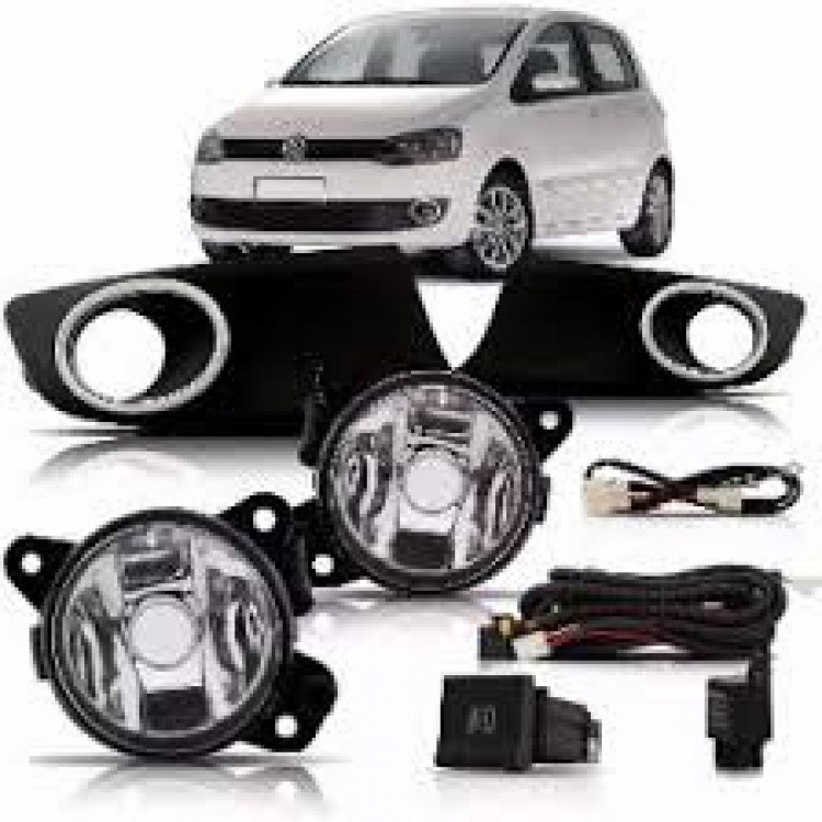 Kit Farol de Milha Fox/ Space Fox 2014 Com molduras cromadas e botão modelo origina(quadrado) Não serve na bluemotion