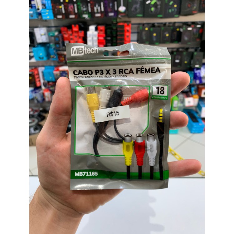 Cabo De Áudio P3 Para 3Rca Fêmea Estéreo 20Cm Mbtech
