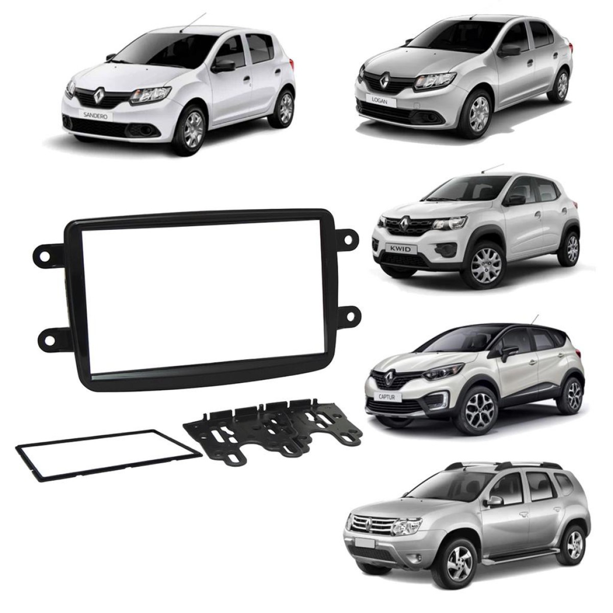 Moldura 2 DIN Renault Kwid/ Captur/ Duster/ Sandero/ Logan Black Piano 2380