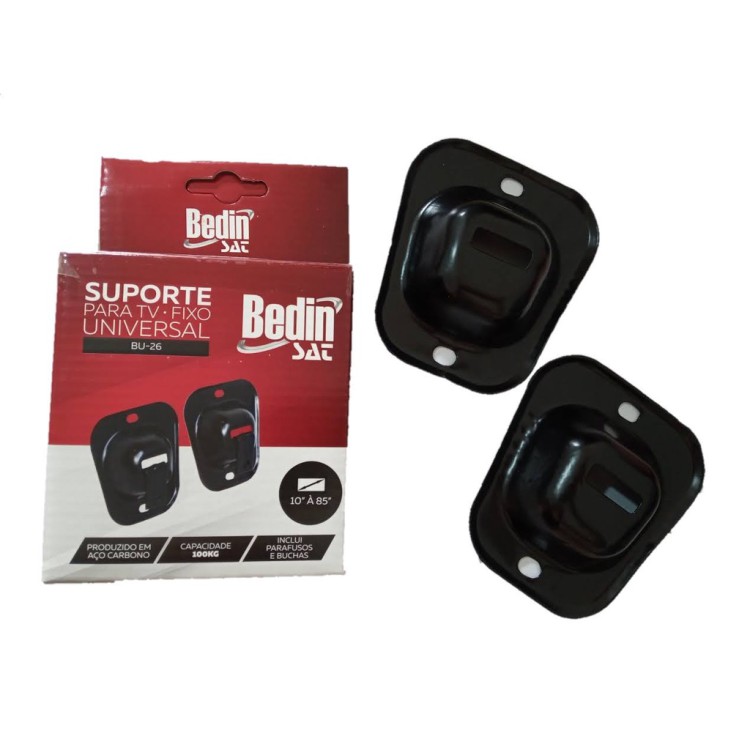 - Suporte Universal de ferro Bedinsat para TV`s de LCD, LED, Plasma e Monitor, produzido em ferro especial liso e com um acabamento de alta qualidade. Fácil instalação, precisa e segura, com design moderno, funcional e discreto, o suporte BU-26 Bedinsat é leve e compacto, permitindo uma instalação muito mais próxima da parede.