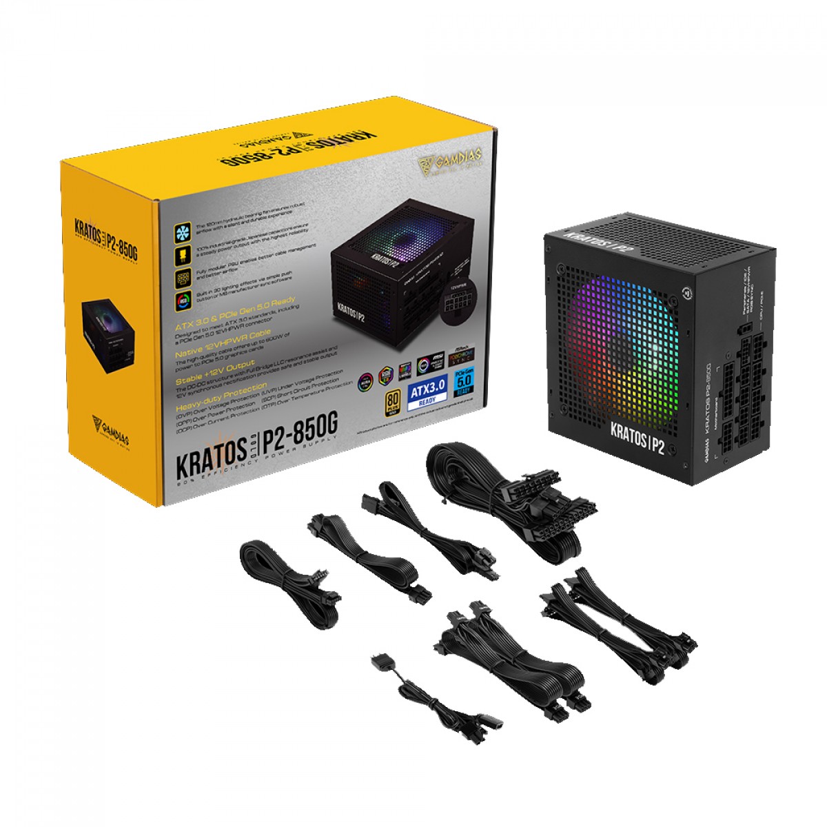 Fonte Gamdias Kratos P2 850w 80 Plus Gold Full Modular Argb