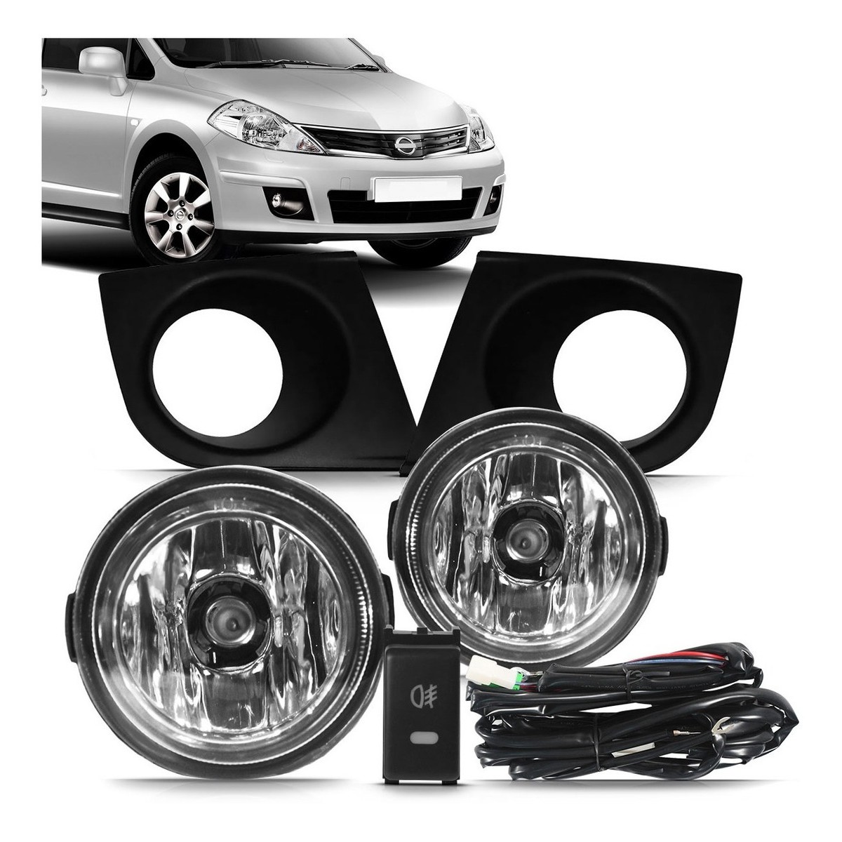 Kit farol de Milha Tiida 2009 a 2013 com Molduras e Botão Modelo Original